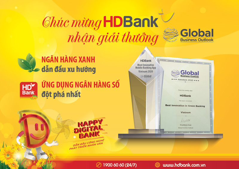 Giải thưởng Triển vọng Kinh doanh Toàn cầu năm 2020 (Global Business Outlook Awards 2020) bình chọn các tổ chức, doanh nghiệp có kết quả hoạt động xuất sắc trong năm. Đây là sự ghi nhận có giá trị lớn đối với các đơn vị cho sự đổi mới, sáng tạo và lợi thế kinh doanh của mình. Năm nay, HDBank là một trong những cái tên được vinh danh cùng với các ngân hàng đến từ nhiều quốc gia trên thế giới như Standard Chartered, CIMB Bank, Bank of the Philippines, CTBC Bank…