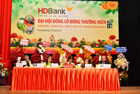 ĐHCĐ HDBank 2019 đã thông qua kế hoạch kinh doanh năm 2019 với các chỉ tiêu chính như sau: Tổng tài sản đạt 249.546 tỷ đồng, tăng 16% so với 2018; huy động vốn đạt 224.238 tỷ đồng, tăng 20%; dư nợ tín dụng lên 160.911 tỷ đồng; kiểm soát tỷ lệ nợ xấu thấp dưới 2%. Cổ đông cũng thống nhất mục tiêu lợi nhuận trước thuế tăng 27% so với 2018, lên 5.077 tỷ đồng. Các hệ số khả năng sinh lời ROA và ROE sẽ tiếp tục được giữ mức cao, lần lượt 1,7% và 21,2%. Tiếp tục mở rộng mạng lưới điểm giao dịch ngân hàng lên 308 chi nhánh và phòng giao dịch.