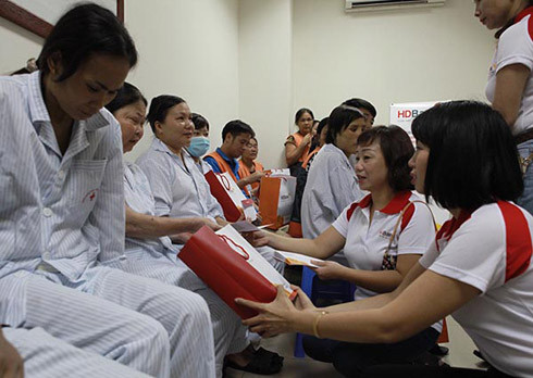 Bệnh nhân Phạm Thị Sao (quê Thái Bình) chia sẻ: “Chúng tôi chân thành cảm ơn HDBank đã tặng quà, động viên, thăm hỏi. Những phần quà HDBank trao tặng sẽ giúp chúng tôi vượt qua những khó khăn vất vả để chiến thắng bệnh tật”.