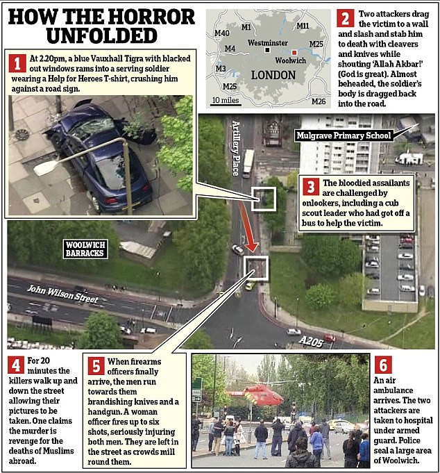 Hình ảnh của tên sát nhân với con dao và bàn tay dính đầy máu thản nhiên đứng trước máy quay của một nhân chứng khiến người dân Anh không thể không liên tưởng tới sự bình tĩnh của anh em nhà Tsarnaev sau khi gây ra vụ đánh bom kép tại thành phố Boston (Mỹ) tháng trước.