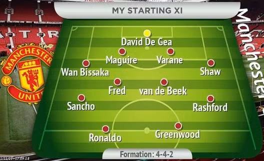 ANTD.VN - Theo Daily Star, HLV Ralf Rangnick nhiều khả năng sẽ áp dụng sơ đồ 4-4-2 ưa thích sau khi tiếp quản MU. Khi đó, Ronaldo có thể đá cặp cùng Greenwood trên hàng công và được hỗ trợ bởi Rashford cùng Sancho. Van de Beek cũng sẽ được trọng dụng hơn.