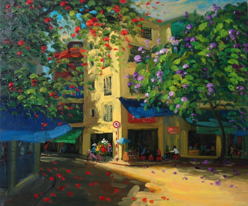 Trái ngược với Đỗ Quang Hiển, phố cổ là một trong những đề tài họa sĩ Nguyễn Minh Tân dành nhiều tình yêu nhất. Với Minh Tân, phố cổ Hà Nội không chỉ đơn giản là những con phố mà còn chứa đựng bao điều kỳ diệu với những dấu tính của thời gian, những thăng trầm của lịch sử, những thay đổi trong tư duy nghệ thuật kiến trúc trong suốt chiều dài nghìn năm và sự giao lưu giữa kiến trúc Việt với kiến trúc phương Tây.
