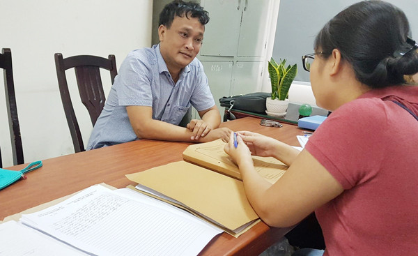PV Báo ANTĐ trao đổi với Đinh Quang Thắng tại trụ sở Cơ quan CSĐT CAQ Nam Từ Liêm