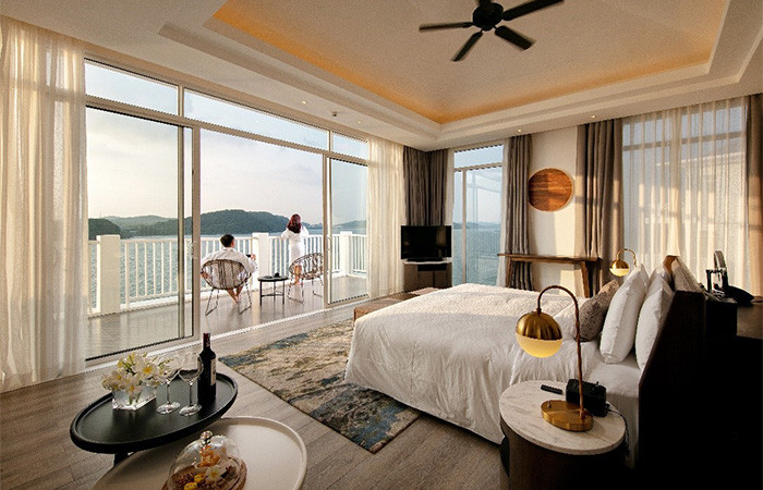 Những căn villa hai tầng tách biệt được xây dựng trên nhiều cao độ như biệt thự trên mặt nước, biệt thự hướng biển, biệt thự ven đồi, biệt thự ghềnh đá… Từ bể bơi vô cực trên cao, phóng trọn tầm mắt là biển Nam Phú Quốc xanh ngọc bích đẹp như thiên đường.