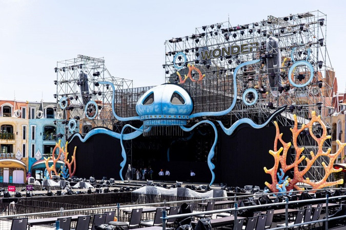 Tại quảng trường Wonder Square rộng 10.400m2 trên đảo Hòn Tre, không khí nhộn nhịp hơn hẳn bởi nhiều du khách trong và ngoài nước tập trung về đây để tận hưởng các hoạt động vui chơi, giải trí và nghỉ ngơi trước khi “bùng cháy” cùng siêu nhạc hội 8Wonder. Khu vực sân khấu đại dương vô cực, tâm điểm của công viên giải trí VinWonders Nha Trang, cũng đã hoàn tất những khâu chuẩn bị cuối cùng.