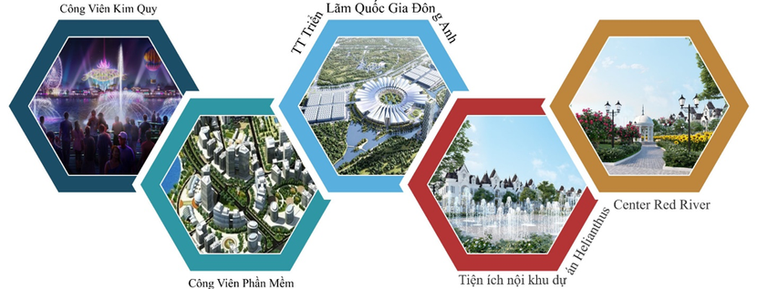 Cách dự án 1,7km, cư dân dễ dàng kết nối nhanh chóng với khu vui chơi giải trí Công viên Kim Quy, một trong những khu vui chơi giải trí lớn nhất của thủ đô Hà Nội, mô phỏng truyền thuyết về thần Kim Quy và mang đậm dấu ấn văn hóa của mảnh đất ngàn năm văn hiến, vạn năm văn vật. Hơn thế, cách dự án 3,3 km là Công viên phần mềm Vintech được phát triển hệ thống hạ tầng kỹ thuật, xã hội xây dựng các khu nghiên cứu phát triển sản phẩm công nghệ cao, mang lại môi trường làm việc chuẩn quốc tế để thu hút nhân tài trong và ngoài nước, giúp Đông Anh phát triển mạnh mẽ về chính trị, kinh tế, văn hóa, mang đến cho cộng đồng tri thức văn minh và thời thượng.