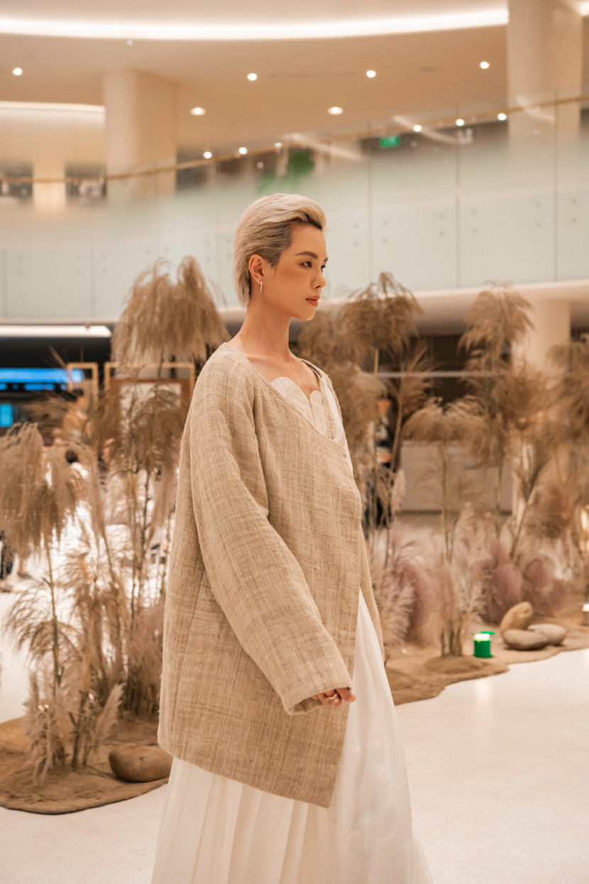 Lấy cảm hứng từ những thửa ruộng bậc thang kỳ vĩ, “Terrace Collection” gồm 30 thiết kế được tạo nên từ vải gai dầu dệt tay của đồng bào H’Mông, kết hợp cùng lụa Mã Châu cổ truyền, thể hiện sự giao thoa tinh tế giữa thủ công bản địa và cảm quan đương đại. Bộ sưu tập do hai nhà thiết kế Phạm Bá Lâm và Trần Phương Thảo (Hemp Oi) thực hiện. Mỗi thiết kế là sự kết nối giữa các thế hệ, gửi gắm thông điệp về lối sống tử tế, gìn giữ bản sắc và kiến tạo tương lai hài hòa với thiên nhiên.