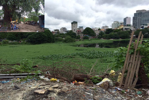Hồ Linh Quang đang bị ô nhiễm nghiêm trọng bởi nước, rác thải và khu vực đang thi công thuộc dự án cải tạo hồ Linh Quang