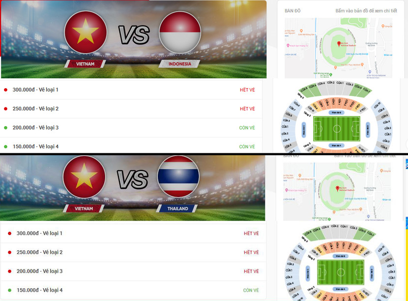 Tính tới 17h hôm nay, các loại vé đẹp trận Việt Nam - Indonesia và Việt Nam - Thái Lan đã được bán hết
