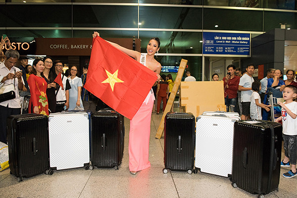 Hoàng Thùy còn tiết lộ thêm cô mang theo 12 kiện hành lý gồm 9 vali đựng trang phục, phụ kiện, thực phẩm,... và 3 kiện hành lý gói trang phục dân tộc để đáp ứng thuận lợi các yêu cầu và hoạt động những ngày tham gia thi "Miss Universe".