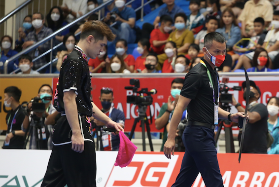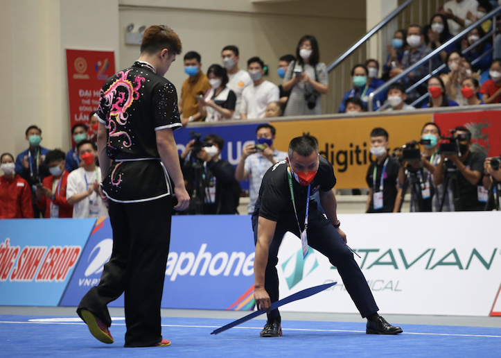 ANTD.VN - Trong bài thi đao thuật, võ sỹ Su Wei của Malaysia không may bị tuột lưỡi đao và buộc phải dừng bài thi ngay lập tức, sớm chia tay SEA Games 31.