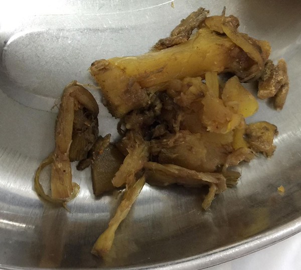 Các bác sĩ gắp ra được khoảng 1 lạng bã măng khô từ dạ dày bệnh nhân