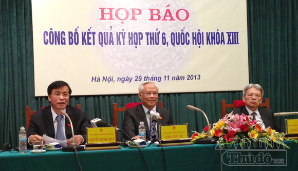 Ngay sau phiên bế mạc kỳ họp thứ 6, Quốc hội khóa XIII, như thường lệ Văn phòng Quốc hội đã tổ chức một buổi họp báo. Lần này ngoài Chủ nhiệm Văn phòng Nguyễn Hạnh Phúc, Phó chủ nhiệm Nguyễn Sĩ Dũng còn có Phó Chủ tịch Quốc hội Uông Chung Lưu cùng Bộ trưởng Bộ TN&MT Nguyễn Minh Quang tham dự và trả lời các câu hỏi của báo giới.