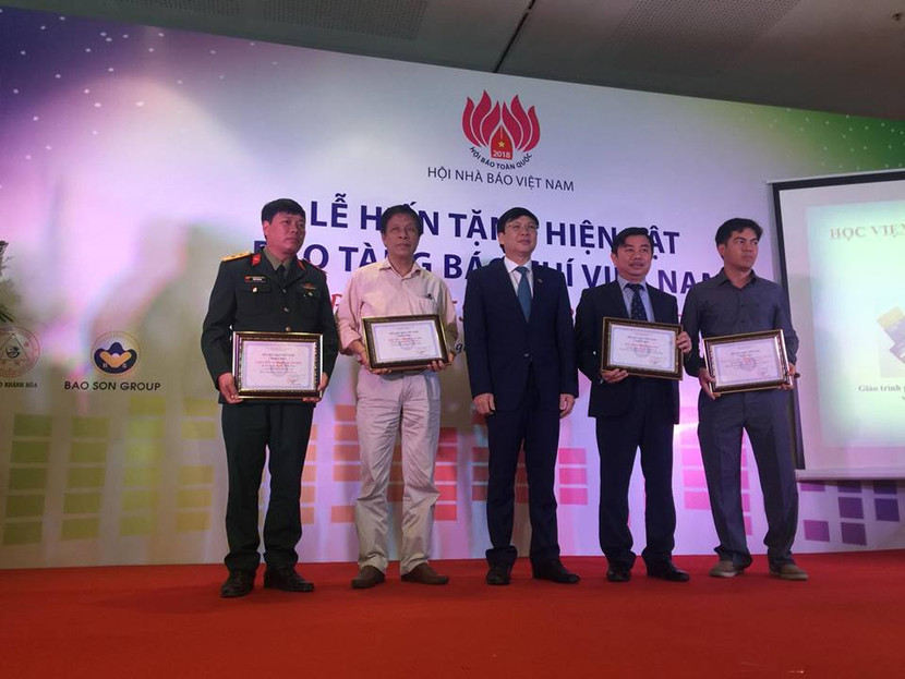 Nhóm hiện vật các nhà báo, nhà nghiên cứu, cộng tác viên bảo tàng hiến tặng như: cuốn sách “Điện Biên Phủ qua các bài viết tại mặt trận” của nhà báo Trương Cộng Hòa, bức ảnh chụp “Đồng chí Trường Chinh thăm lớp đào tạo báo chí dài hạn tháng 7-1964” của nhà báo Nguyễn Hải…