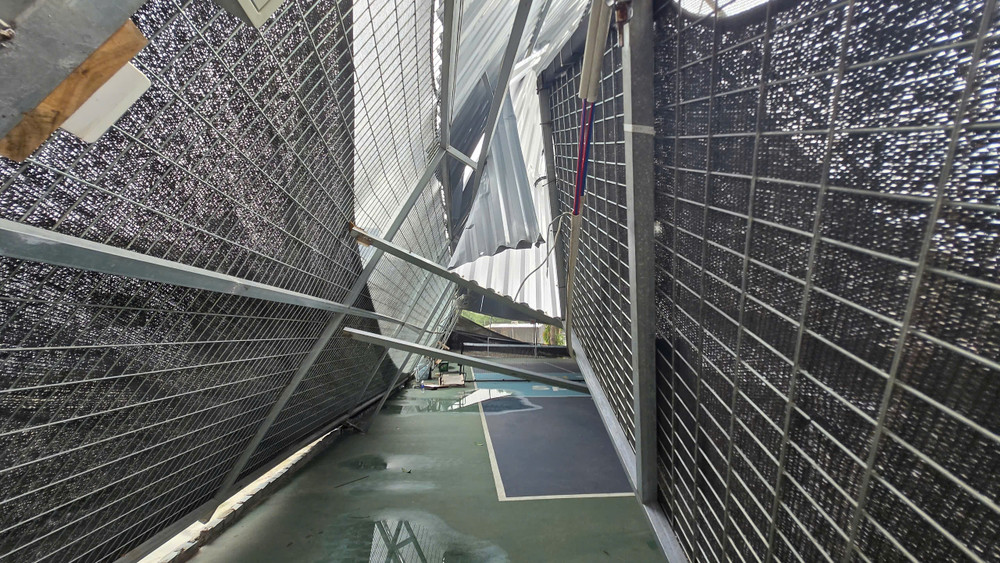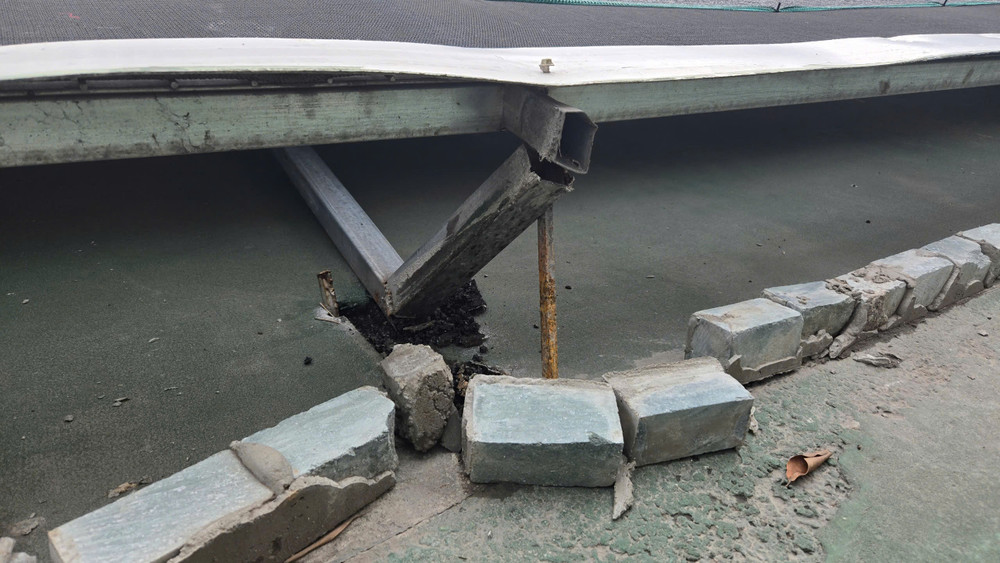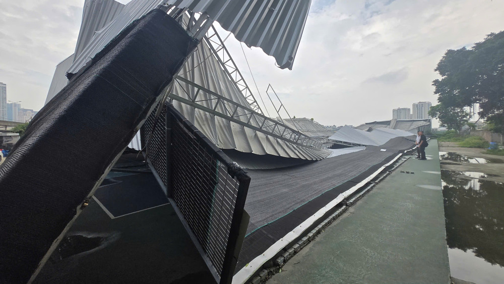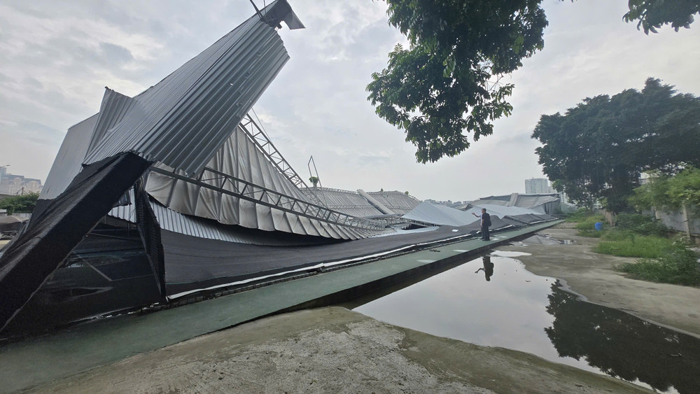 ANTD.VN - Sáng nay 16/6, sân pickleball tại số 40 Phạm Hùng, phường Mỹ Đình 2, Hà Nội, vẫn giữ nguyên hiện trạng đổ sập sau cơn mưa bão hôm 15/6. Bên trong sân pickleball này cho thấy rõ kết cấu không đảm bảo an toàn...