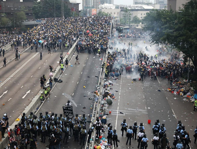 ANTD.VN - Sáng 13-6, phe phản đối tuyên bố tiếp tục biểu tình cho đến khi chính quyền Hong Kong rút lại dự luật dẫn độ gây tranh cãi, nhiều doanh nghiệp đóng cửa, số lượng học sinh đổ ra đường tham gia biểu tình ngày một đông khiến tình hình chưa có dấu hiệu “hạ nhiệt”. Chính quyền Hong Kong đã hoãn phiên tranh luận về dự luật dẫn độ gây tranh cãi sau khi hàng chục ngàn người biểu tình bao vây Hội đồng Lập pháp, chặn các tuyến đường lớn dẫn vào khu vực trung tâm hôm 12-6.