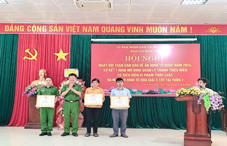 Tại hội nghị, 4 cá nhân thuộc xã Sen Phương có thành tích trong công tác xây dựng phong trào toàn dân bảo vệ ANTQ được Chủ tịch UBND xã tặng Giấy khen; có 3 cá nhân có thành tích trong thực hiện mô hình “Quản lý thanh thiếu niên có biểu hiện VPPL” tại xã Sen Phương đã được trao tặng Giấy khen của Chủ tịch UBND huyện Phúc Thọ.