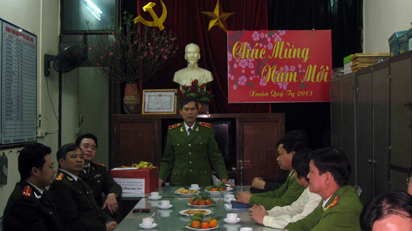 Về kế hoạch, phương án đảm bảo ANTT Tết Nguyên đán Quý Tỵ 2013 trên địa bàn, Trung tá Nguyễn Hùng Sơn báo cáo: CBCS trong đơn vị đang tích triển khai kế hoạch, phương án bảo vệ, giữ gìn ANTT trước, trong và sau đêm Giao thừa cũng như những ngày sau đó; chủ động phòng chống đua xe, cổ vũ đua xe trái phép; giữ gìn TTĐT, đảm bảo TTATGT trên địa bàn để nhân dân vui đón Tết.