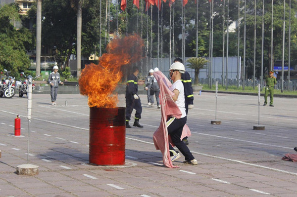 Nội dung chữa cháy tại Hội thao PCCC và CNCH do lực lượng Cảnh sát PCCC và CNCH- CAQ Hoàn Kiếm phối hợp tổ chức