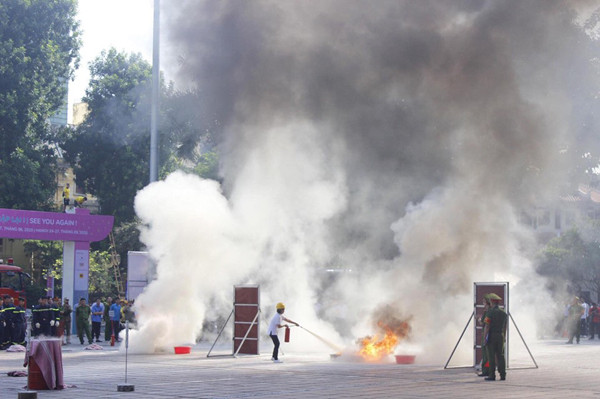 Lực lượng Cảnh sát PCCC và CNCH- CAQ Hoàn Kiếm tuyên truyền, diễn tập PCCC tại Hội thao PCCC và CNCH năm 2019