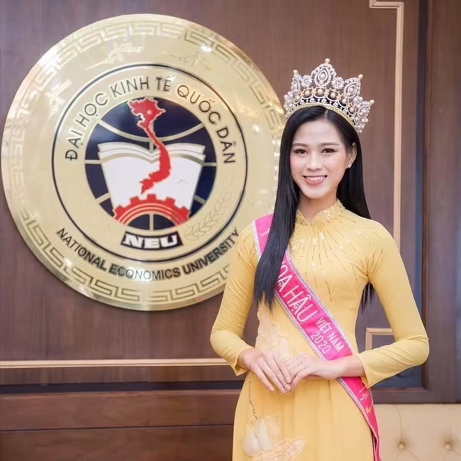 Hai ngày nay, nhiều Fanpage và Facebooker cùng chia sẻ những bức hình chụp trong phòng tiếp khách của Trường ĐH Kinh tế quốc dân với hình ảnh tân Hoa hậu đội vương miện, mặc áo dài màu vàng đang ngồi nghiêm trang trên một trong hai ghế chủ tọa.