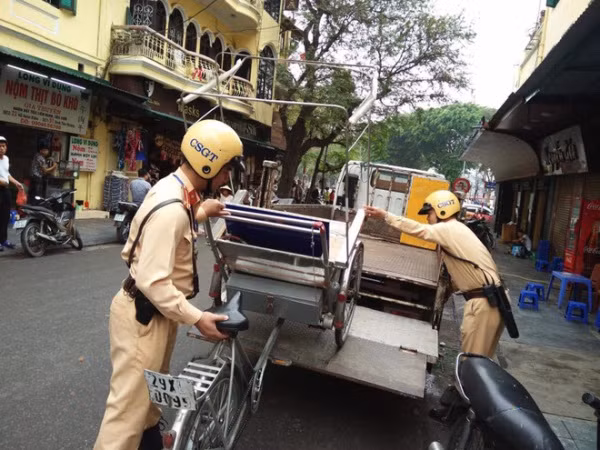 Các xe xích lô "dù" cũng bị CSGT kiểm tra, xử lý