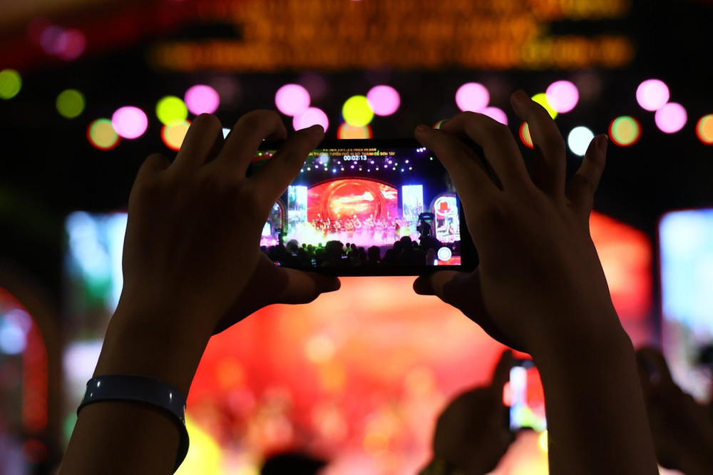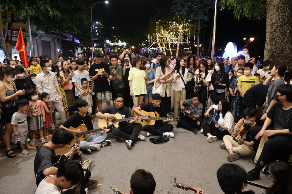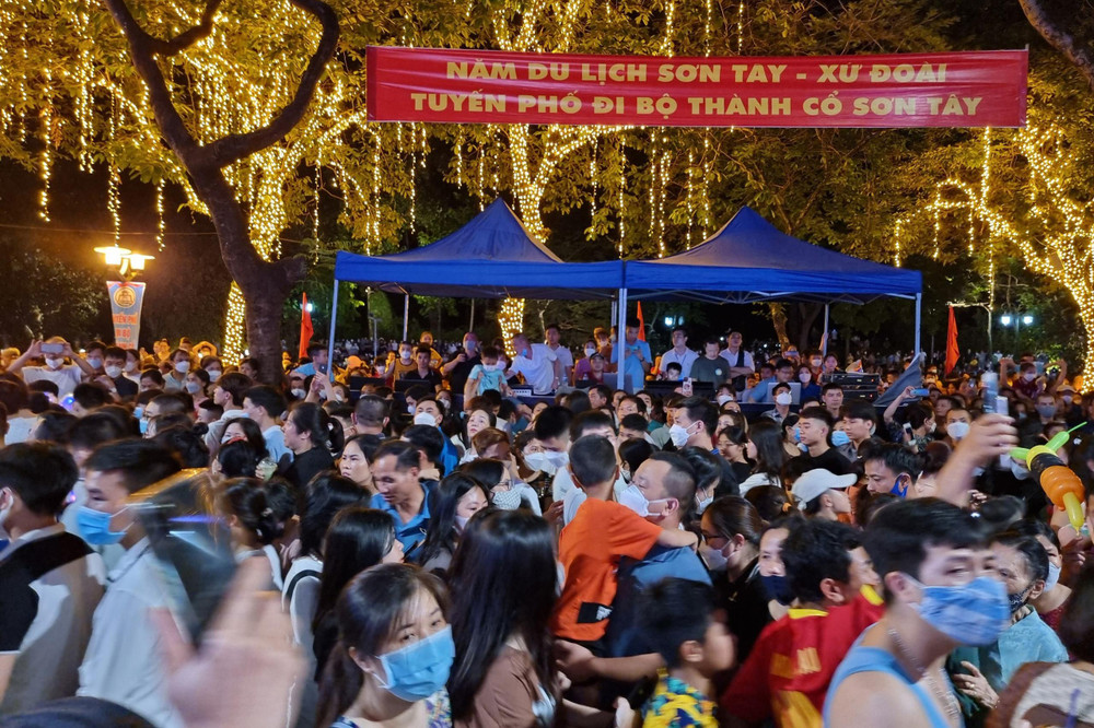 Hình ảnh ấn tượng: Phố đi bộ hồ Gươm và Thành cổ Sơn Tây đông nghịt người tối 30-4