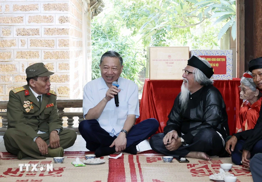 Hình ảnh Chủ tịch nước Tô Lâm thăm nhân dân làng cổ Đường Lâm, Hà Nội