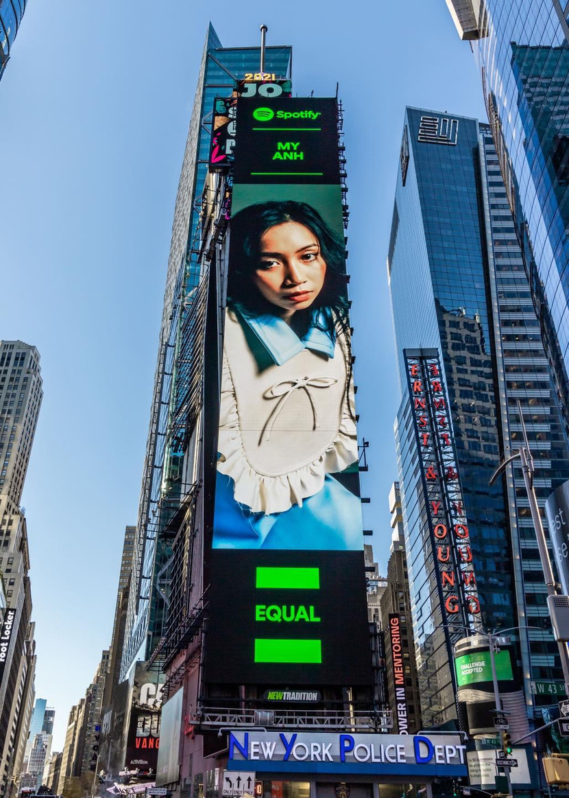 Theo đó, con gái út của "diva" Mỹ Linh được chọn làm nghệ sĩ Việt tiếp theo trong chiến dịch Equal tôn vinh tài năng và phong cách âm nhạc của các nữ nghệ sĩ toàn cầu, và sâu xa hơn nữa chính là để ủng hộ cho tiếng nói bình đẳng giới và nữ quyền do dịch vụ nhạc số trực tuyến có số lượng người dùng lớn nhất thế giới Spotify thực hiện. Đây là địa điểm vô cùng nổi tiếng của nước Mỹ, là một trong những địa điểm tấp nập nhất thế giới với số lượng người qua lại mỗi ngày có thể lên tới hàng trăm nghìn. Chính vì thế, các biển quảng cáo đặt tại đây luôn thu hút được nhiều sự chú ý.