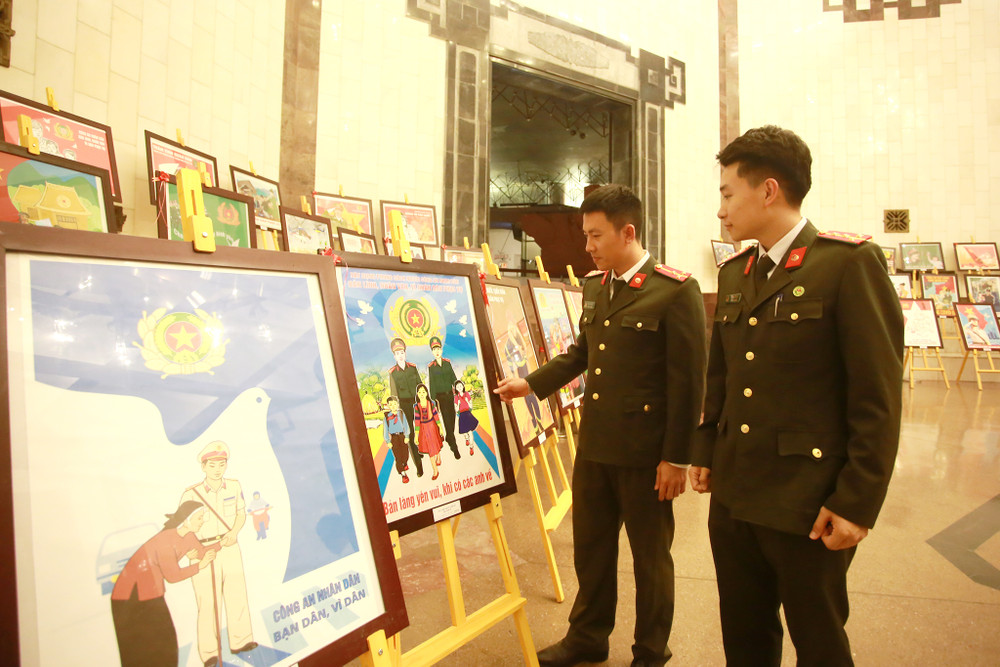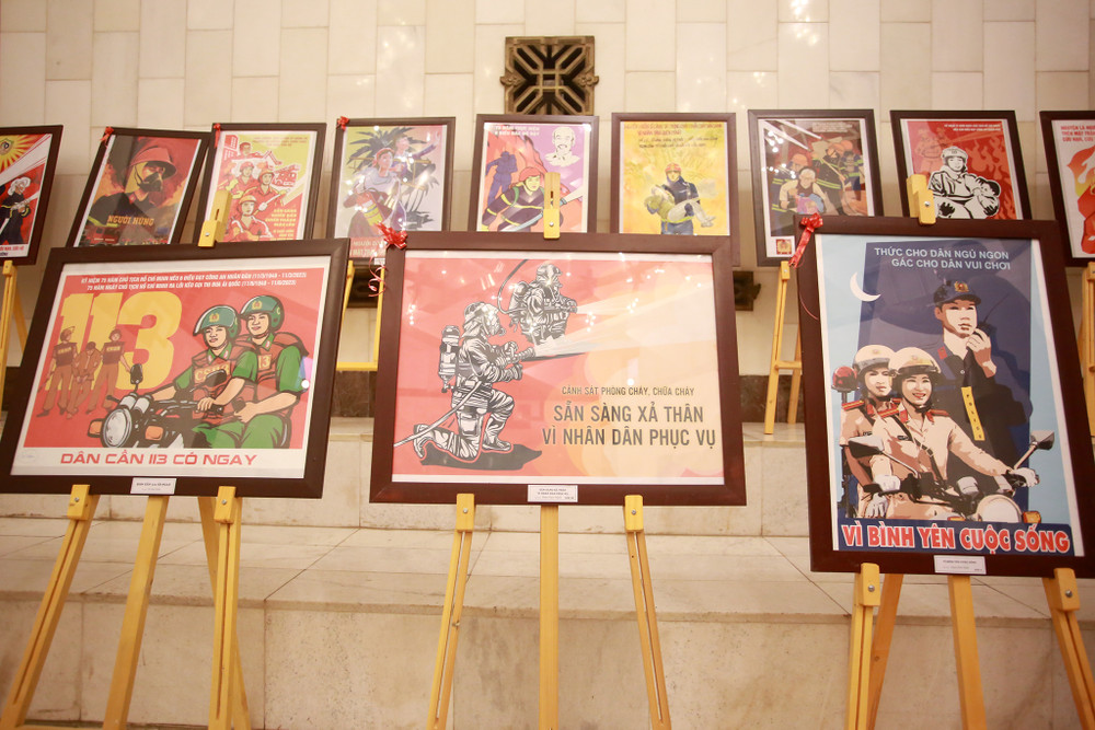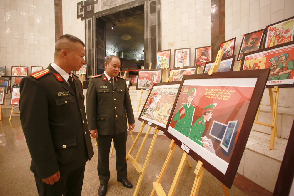 ANTD.VN - Triển lãm tranh cổ động tuyên truyền “Xây dựng phong cách người Công an nhân dân bản lĩnh, nhân văn, vì nhân dân phục vụ” nhân Kỷ niệm 75 năm Ngày Chủ tịch Hồ Chí Minh nêu Sáu điều dạy Công an nhân dân (11-3-1948/ 11-3-2023) và 75 năm Ngày Chủ tịch Hồ Chí Minh ra Lời kêu gọi thi đua ái quốc (11-6-1948/ 11-6-2023) đang diễn ra tại Bảo tàng Hồ Chí Minh (quận Ba Đình, TP Hà Nội).