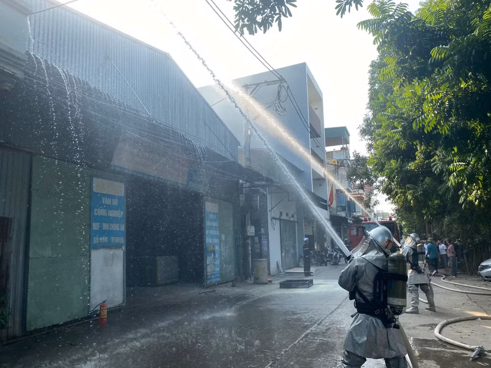 Hình ảnh lửa bao trùm kho xưởng ở tình huống giả định tại xã Chàng Sơn