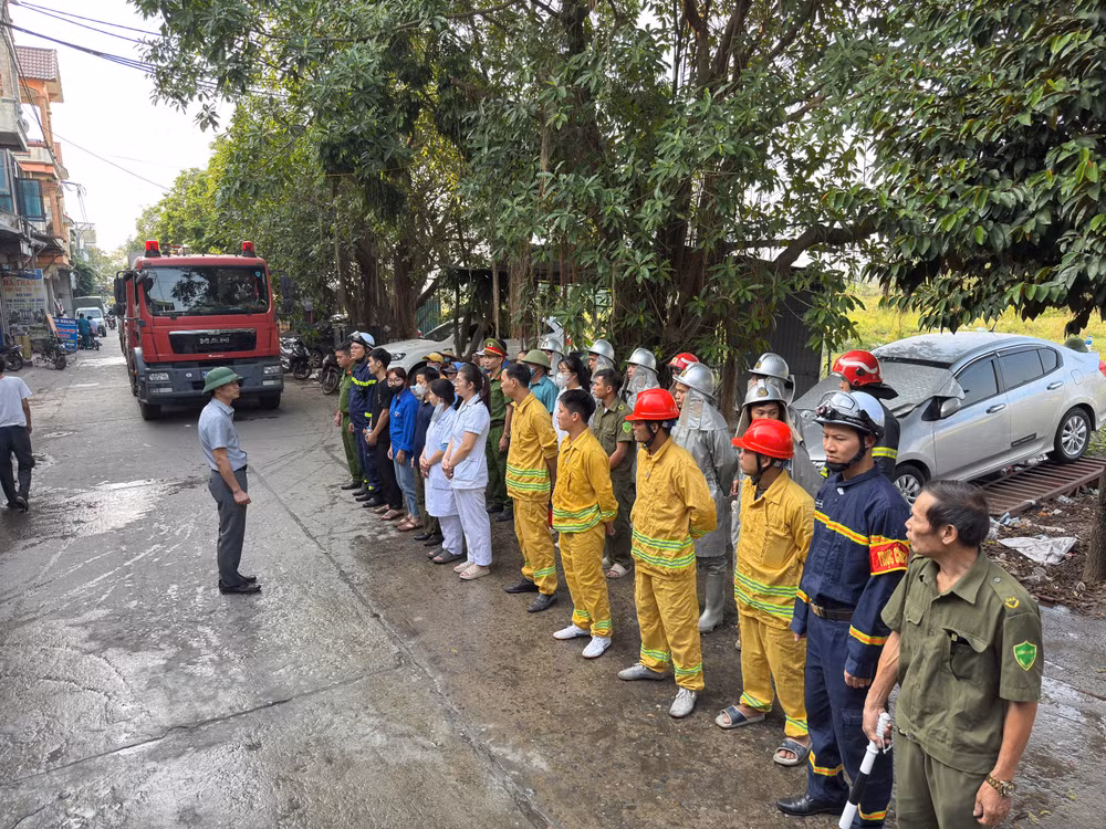 ANTD.VN - Lực lượng Cảnh sát phòng cháy, chữa cháy và cứu nạn, cứu hộ - Công an huyện Thạch Thất, Hà Nội phối hợp Ủy ban nhân dân xã Chàng Sơn tổ chức thực tập phương án chữa cháy và cứu nạn, cứu hộ tại khu dân cư xã Chàng Sơn.