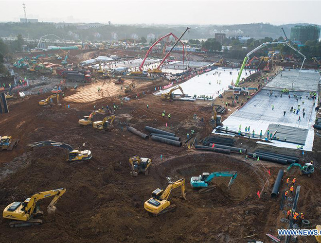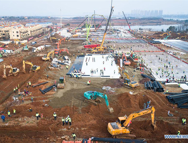 Hình ảnh mới nhất về xây dựng 2 bệnh viện chống đại dịch viêm phổi ở Vũ Hán