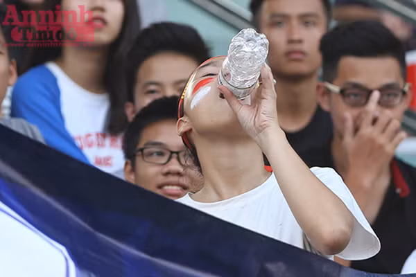 Sau khi "tiếp lửa" cho đồng đội thì tiếp nước cho bản thân mình để tiếp tục cổ vũ.