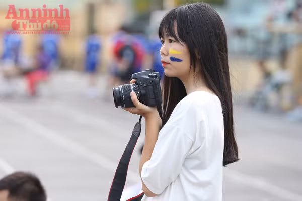 Vừa là cổ động viên vừa là nhiếp ảnh ghi lại những hình ảnh của trường mình.