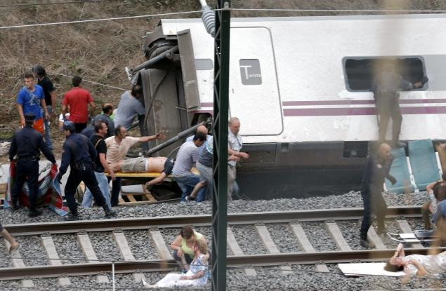 Tàu siêu tốc này có lẽ đã đi trật đường ray khi đi vào khúc cua đột ngột nhất ngay gần với lối vào ga chính ở thành phố Santiago de Compostela.