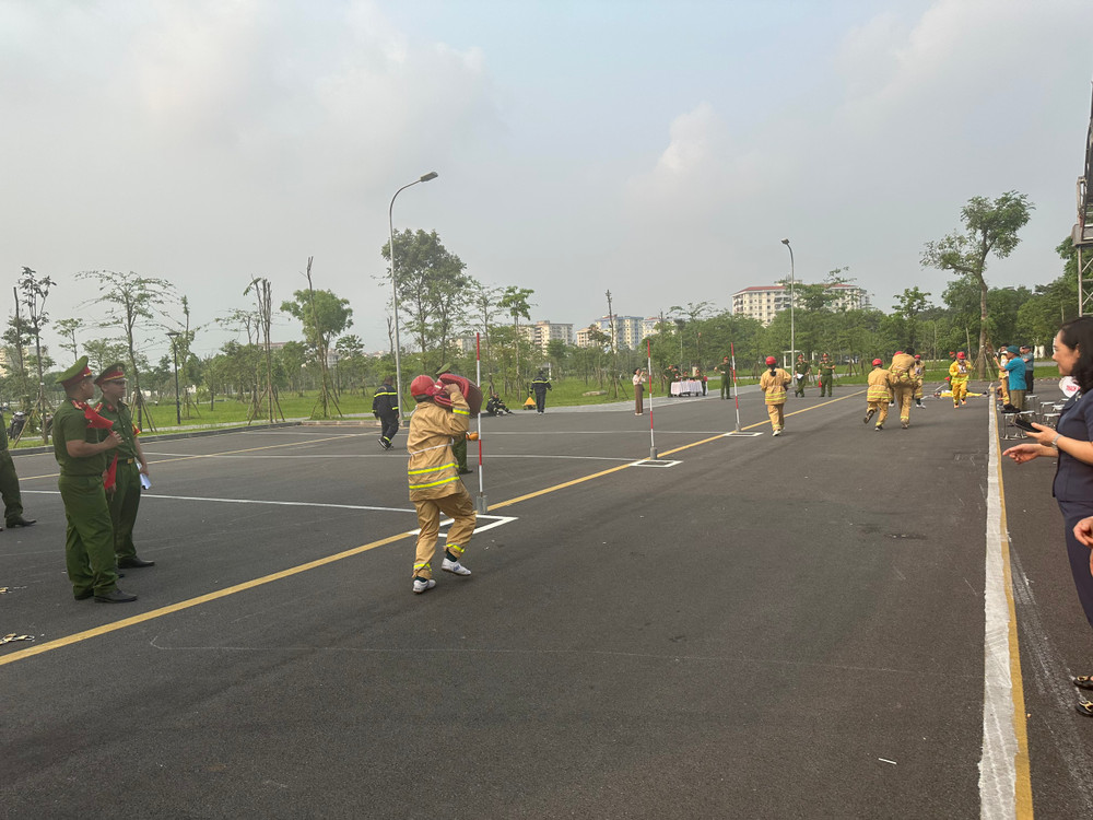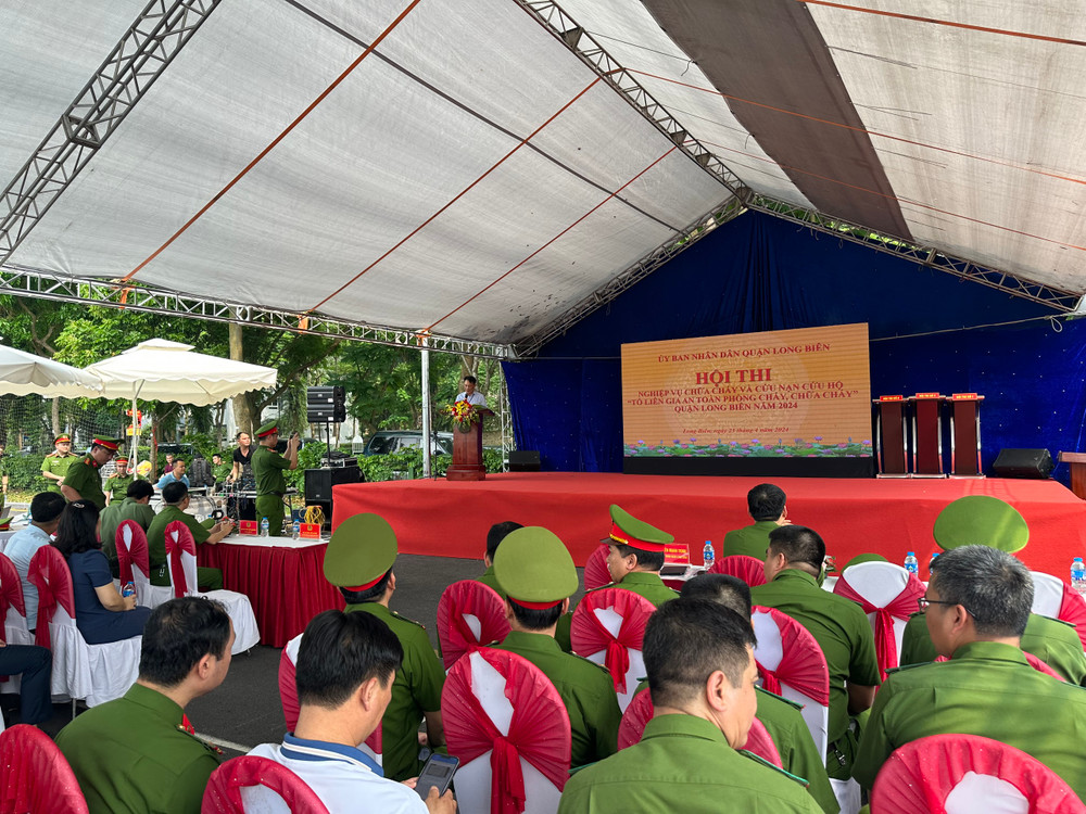 ANTD.VN - Hội thi có sự tham gia của 14 đội tuyển với hơn 100 vận động viên đại diện của các phường thuộc quận Long Biên, Hà Nội. Nội dung Hội thi gồm thi lý thuyết (trả lời câu hỏi về kiến thức PCCC và CNCH) và thực hành chữa cháy, cứu người, di chuyển tài sản đối với loại hình nhà ở kết hợp sản xuất, kinh doanh.
