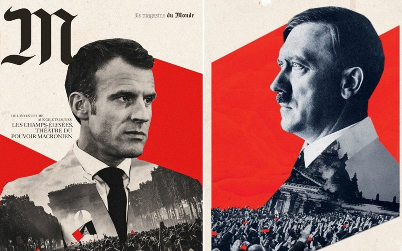 Bức hình của Hitler bị đem ra so sánh với trang bìa tạp chí có hình Tổng thống Pháp Macron