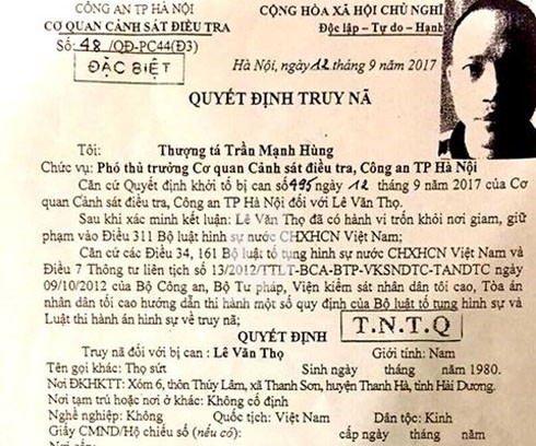 ANTD.VN -Khoảng 17h30 chiều 16-9, Các trinh sát Phòng 5, Cục CSHS, Bộ Công an, phối hợp với các đơn vị đã bắt được Lê Văn Thọ (SN 1980, tức Thọ “sứt”), một trong 2 tử tù vừa trốn khỏi Trại tạm giam T16. Nguồn tin của ANTĐ cho biết, Thọ “sứt” bị bắt khi đang lẩn trốn tại huyện Nam Sách, Hải Dương. Những hình ảnh về việc bắt giứ Thọ "Sứt"...