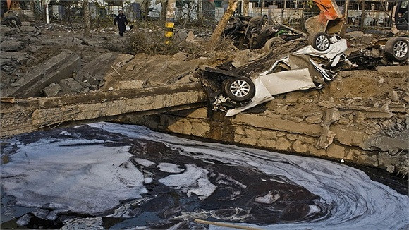Ở khu vực đường ống bị nổ ở ngoại thành đã tạo thành những con hào sâu, đoạn qua thành phố thì hè đường, lòng đường bị xới tung, những tảng bê tông, nhựa đường dày vài chục cm bị lật tung, sức nổ làm hàng trăm xe ô tô cháy, nổ, bẹp dúm, lật nghiêng trên lề đường.