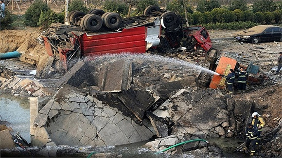 Theo nhận định ban đầu, trong quá trình sửa chữa, tuyến đường ống dẫn dầu của công ty dầu khí lớn nhất Trung Quốc là Sinopec nằm trong khu Hoàng Đảo - thành phố Thanh Đảo đã bị vỡ, dầu rò rỉ ở tuyến đường ống này đã xâm nhập vào tuyến đường ống chính quốc gia dẫn đến sự cố cháy nổ.