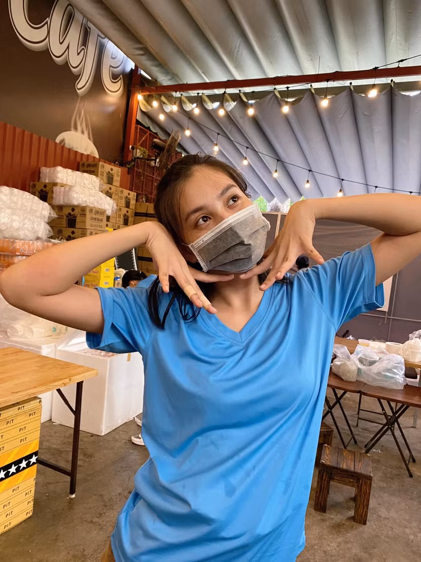 Từ TP.HCM, Tiểu Vy hài hước chia sẻ mọi người vẫn hay trêu cô rằng Covid đã biến Tiểu Vy thành một cô sinh viên thực thục ngay đi phụ việc ở bếp ăn, tối thì học bài, nhiều hôm có tiết học trực tuyến thì lại xin nghỉ làm phụ bếp để học, học xong lại lật đật chạy lên bếp bưng bê, đóng hộp đồ ăn…