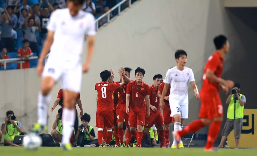 U22 Việt Nam ăn mừng bàn thắng của Văn Toàn (Ảnh: Vũ Vy)