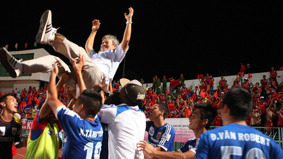 6 năm sau lần đăng quang với chính HLV Lê Thụy Hải ở V-League 2008, Bình Dương lại tìm thấy niềm vui vô bờ khi cán đích ở vị trí số 1 V-League 2014. Nhưng lần này, dấu ấn của nhà cầm quân gốc Hà Nội còn sâu đậm hơn. Sau những vòng đầu tiên chệch choạc, Bình Dương tụt xuống khu vực đáy BXH V-League và phải đối mặt với nguy cơ xuống hạng. Không còn cách nào khác, lãnh đạo đội bóng đất Thủ buộc phải quyết định đưa ông Lê Thụy Hải về.