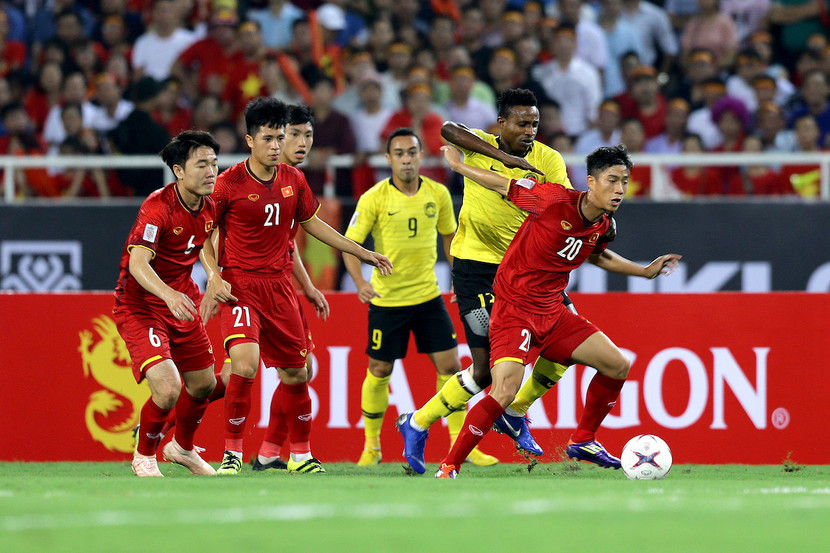 Malaysia (vàng) đã thua 0-2 ở vòng bảng trên sân Mỹ Đình