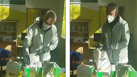 Trong video clip vừa xuất hiện trên mạng xã hội, chiến lược gia người Bồ Đào Nha đeo khẩu trang đang chuẩn bị đồ ăn và nhu yếu phẩm cho những người cao tuổi, nhóm người dễ bị tổn thương giữa đại dịch Covid-19.
