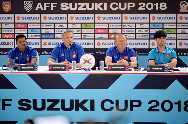 Chiều nay 19-11, tại Yangon (Myanmar) đã diễn ra buổi họp báo trước trận Myanmar - Việt Nam, thuộc khuôn khổ lượt trận thứ ba bảng A giải AFF Cup 2018. HLV Park Hang-seo và tiền đạo Công Phượng là hai đại diện của đội khách dự họp báo.