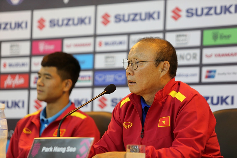 Trưa 5-12, mở đầu buổi họp báo trước trận bán kết lượt về gặp ĐT Philippines (19h30 ngày 6-12, sân Mỹ Đình), HLV Park Hang-seo cho biết ông rất vui và có chút hồi hộp khi thấy đông đảo báo chí, người hâm mộ luôn dõi theo, đứng sau ủng hộ đội tuyển Việt Nam.