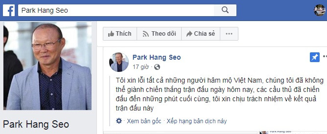 Sáng nay, trong cuộc trao đổi với phóng viên ở sảnh khách sạn, đích thân HLV Park Hang-seo đã lên tiếng. Ông khẳng định tài khoản trên là hoàn toàn giả mạo và thậm chí ông còn không biết dùng Email chứ đừng nói đến Facebook.