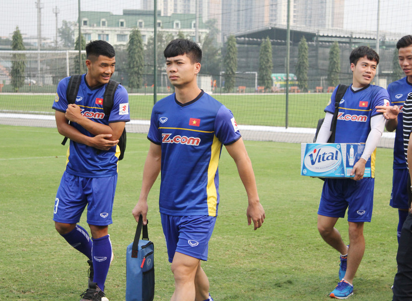 Công Phượng cùng đồng đội vui vẻ bước vào buổi tập (ảnh Bảo Lâm)